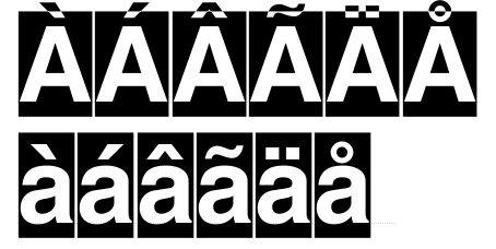 Standard Western character set (MacRoman, Latin-1), full East European character set, incl. Baltic, Icelandic, Maltese, Romanian, Sami, Turkish, Welsh etc., monotonic (= Modern) Greek, and Cyrillic. Nearly 600 characters, incl. full punctuation, brackets, mathematical symbols etc.Available for Mac OS 9 and OS X in Type 1 PostScript directly from MacCampus: