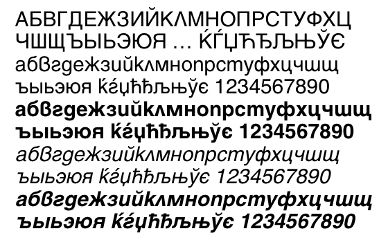 "Balcanica" is a Cyrillic font with a decidedly modern look especially popular in Bulgaria, Macedonia, and now also in Russia. (Latin characters are also included.) Weights: regular, bold, italic, bolditalic. Unicode OpenType PS and TrueType.