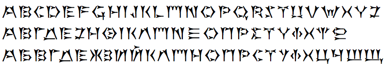 The font also contains "Cuneiform style" Latin, Greek, and Cyrillic alphabets