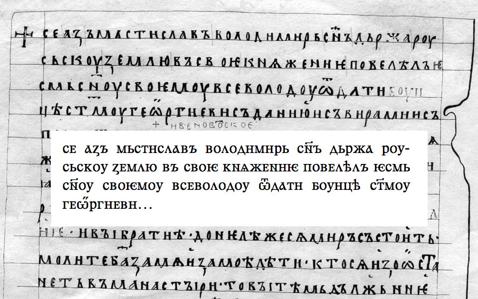 Mstislav's famous "gramota" set in "Kliment Pro".