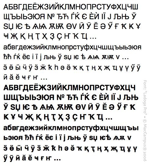 Character set: Standard Cyrillic, Historical Cyrillic, Extended Cyrillic